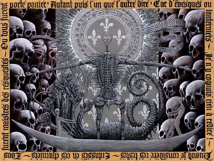 Quand je considère ces testes, Entassées en ces charniers, Tous furent maistres des resquestes, Ou tous furent porte panier. Autant puis l'un que l'autre dire. Car d'evesques ou lanterniers, Je n'y connais rien à redire!